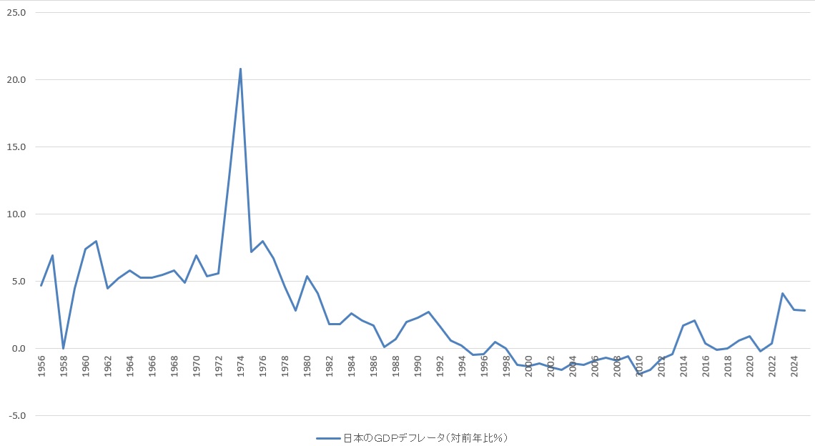 日本のGDPデフレータの推移(対前年比%)