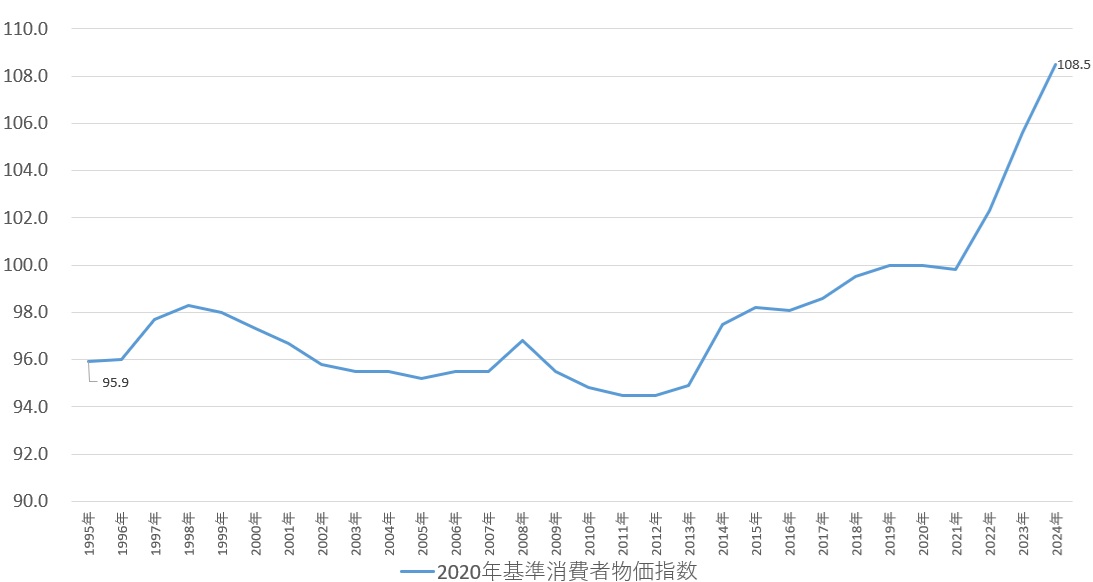 日本の消費者物価指数(2020年基準)
